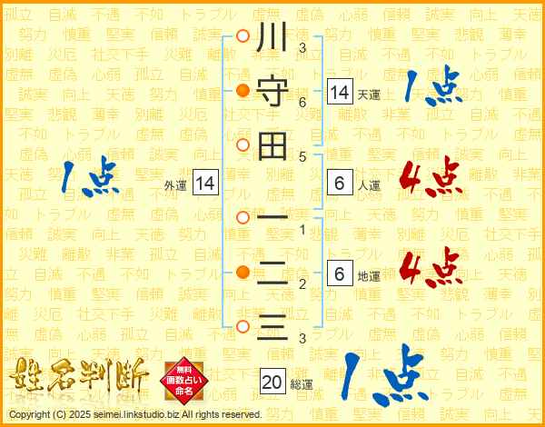 川守田一二三さんの総運は20画の1点!