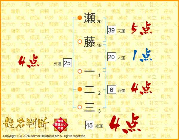 瀬藤一二三さんの外運は25画の4点!