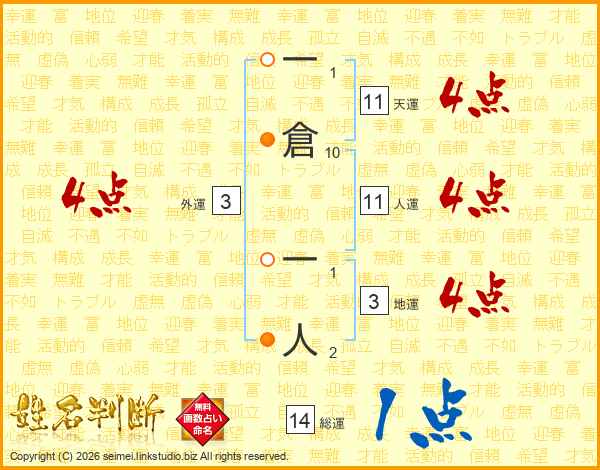 一倉一人さんの人運は11画の4点!