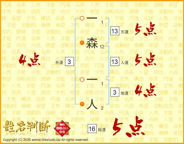 一森一人さんの天運は13画の5点!