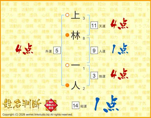 上林一人さんの総運は14画の1点!