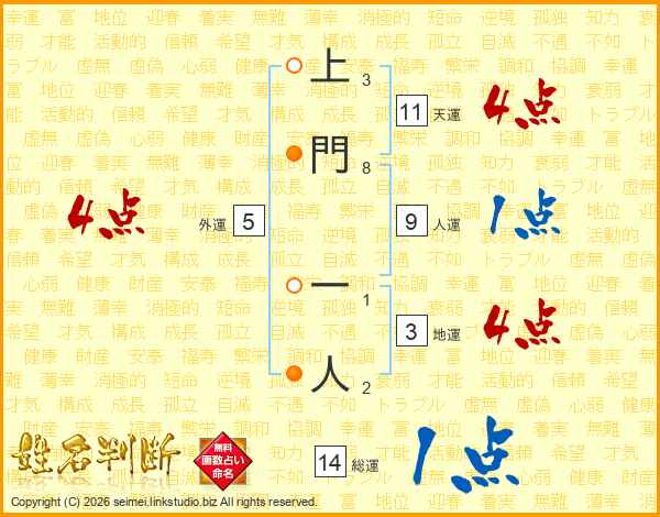 上門一人さんの総運は14画の1点!