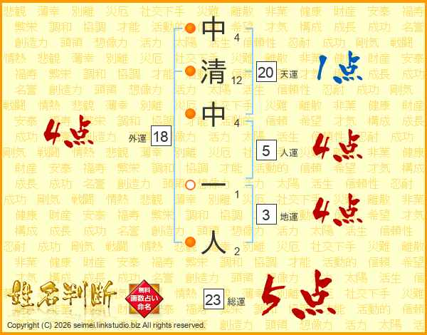中(4画)清(12画)中(4画) 一(1画)人(2画)