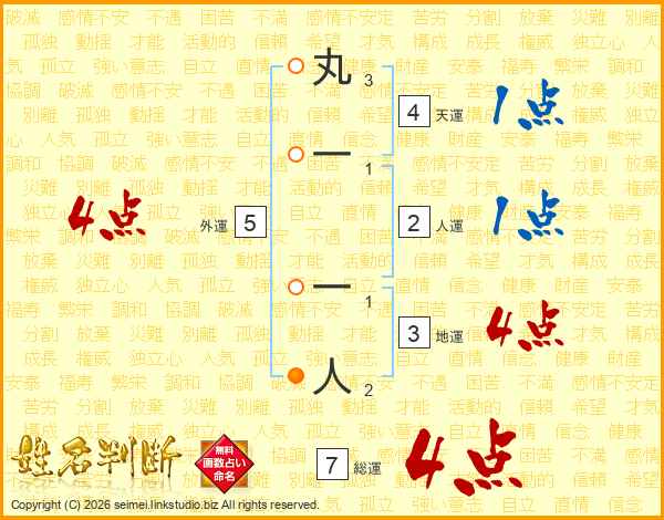丸一一人さんの総運は7画の4点!