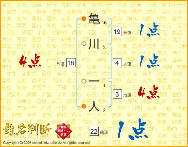 亀川一人さんの総運は22画の1点!