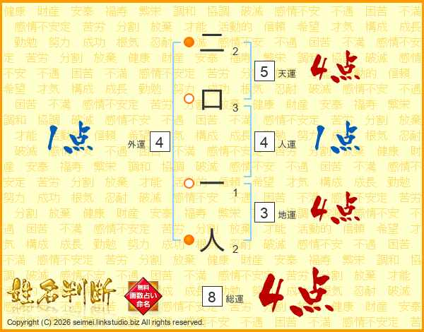 二口一人さんの総運は8画の4点!