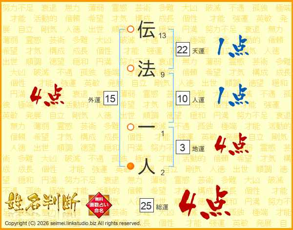 伝法一人さんの総運は25画の4点!