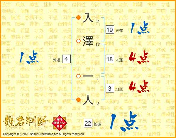 入澤一人さんの総運は22画の1点!