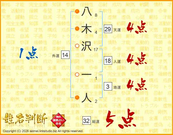八(8画)木(4画)沢(17画) 一(1画)人(2画)