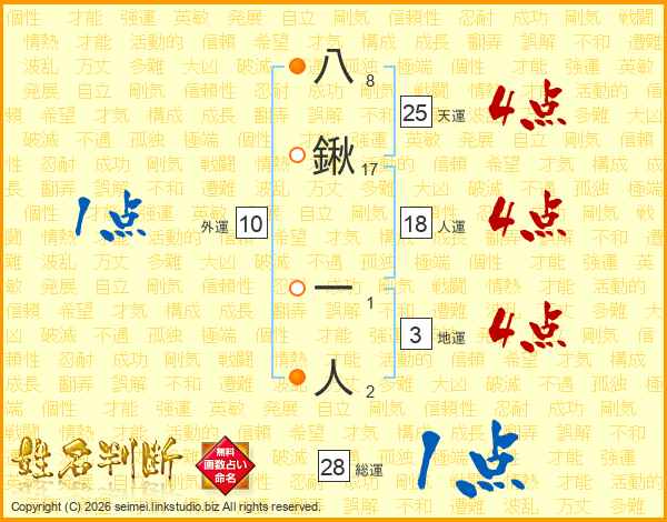 八鍬一人さんの天運は25画の4点!