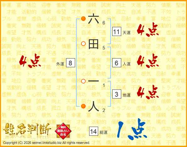 六田一人さんの天運は11画の4点!