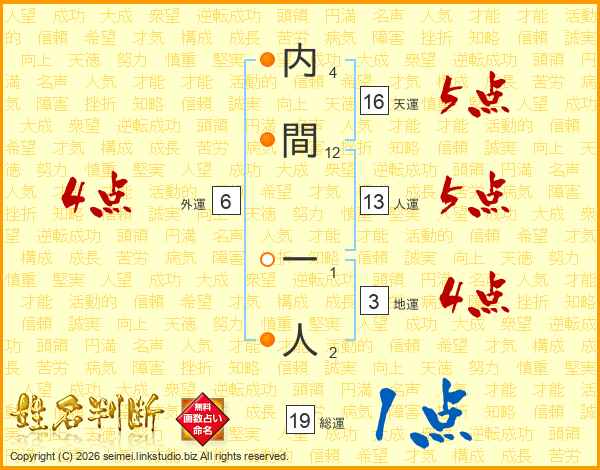 内間一人さんの人運は13画の5点!