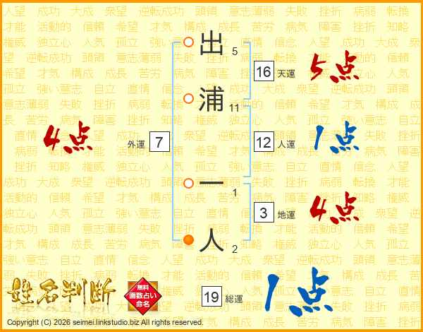 出浦一人さんの外運は7画の4点!