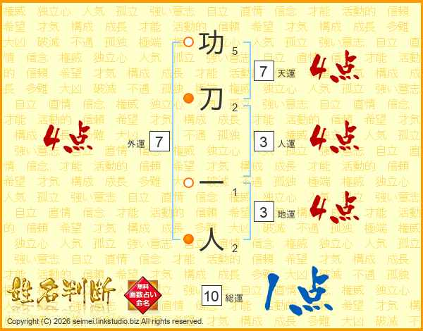 功刀一人さんの外運は7画の4点!