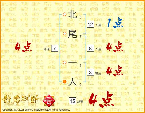 北尾一人さんの総運は15画の4点!