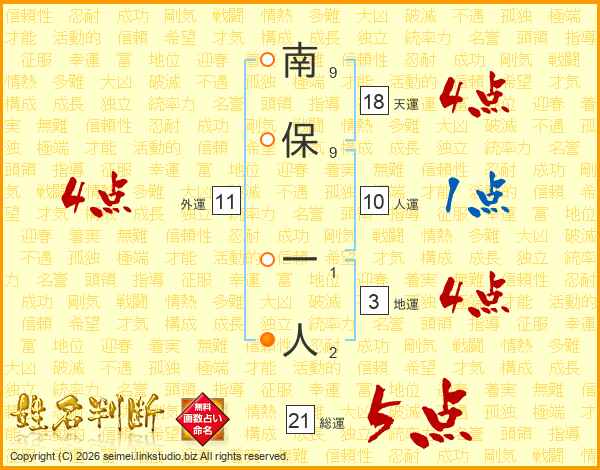 南保一人さんの総運は21画の5点!