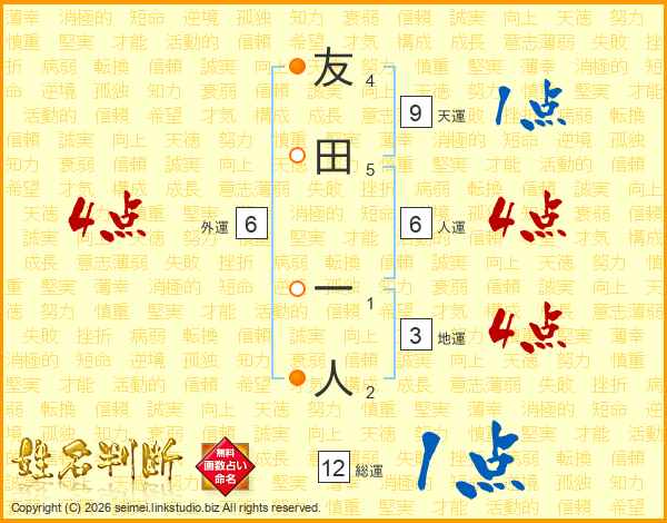 友田一人さんの総運は12画の1点!