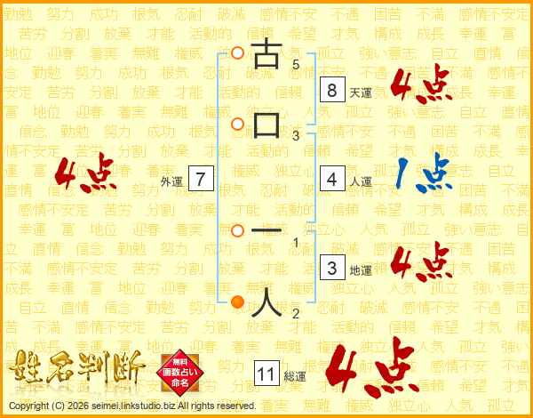 古口一人さんの総運は11画の4点!