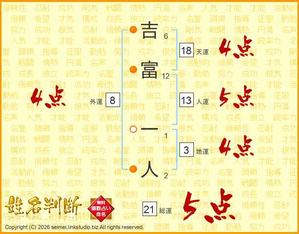 吉富一人さんの天運は18画の4点!