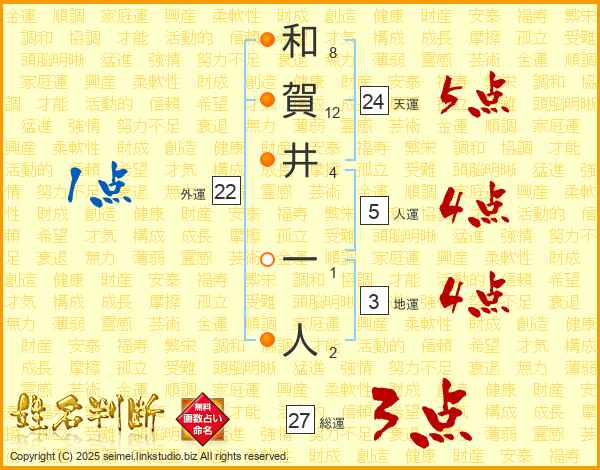 和(8画)賀(12画)井(4画) 一(1画)人(2画)