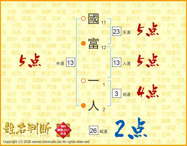 國富一人さんの総運は26画の2点!