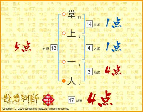 堂上一人さんの天運は14画の1点!