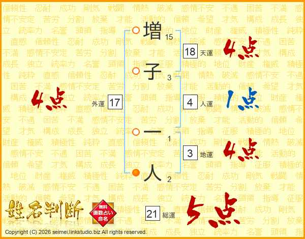 増子一人さんの天運は18画の4点!
