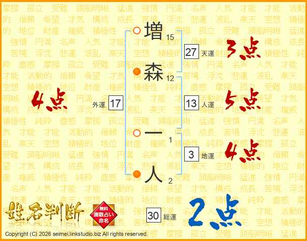 増森一人さんの総運は30画の2点!