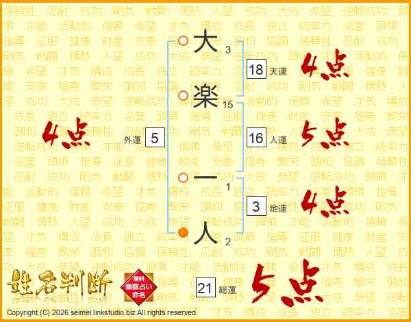 大楽一人さんの総運は21画の5点!