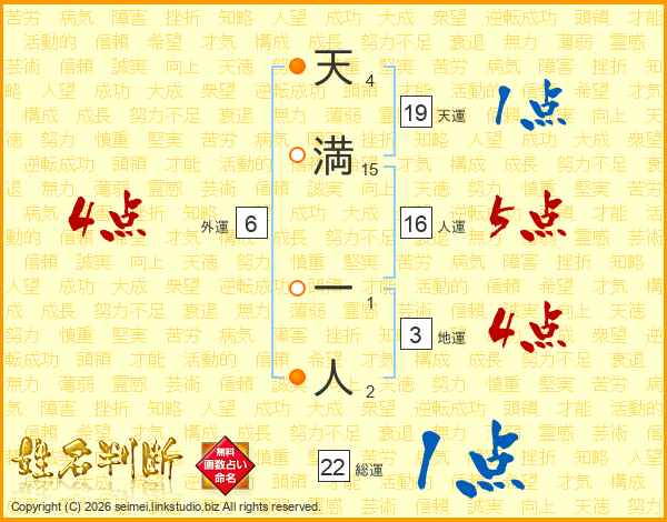 天満一人さんの人運は16画の5点!