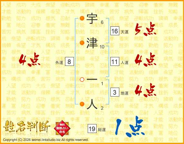 宇津一人さんの総運は19画の1点!