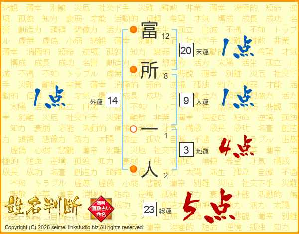富所一人さんの総運は23画の5点!