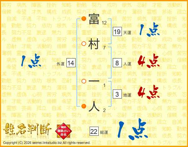 富村一人さんの総運は22画の1点!