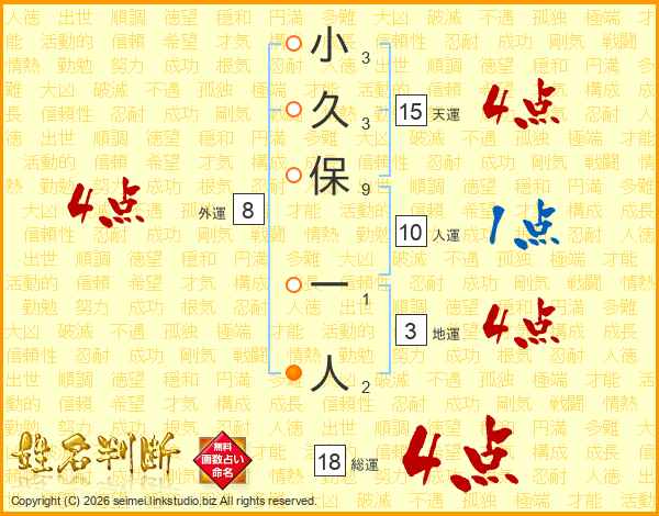 小久保一人さんの総運は18画の4点!