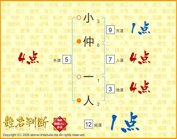 小仲一人さんの人運は7画の4点!