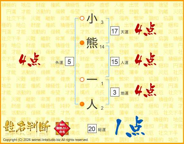 小熊一人さんの総運は20画の1点!