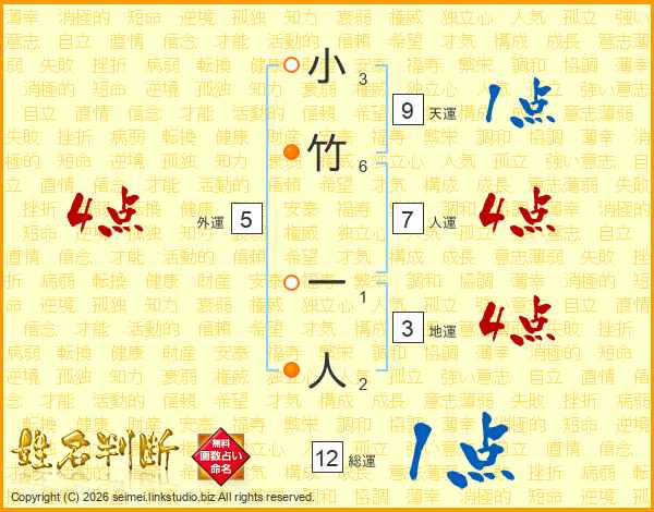 小竹一人さんの総運は12画の1点!