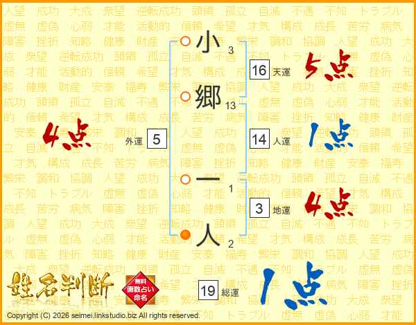 小郷一人さんの総運は19画の1点!