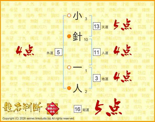 小針一人さんの天運は13画の5点!