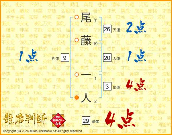 尾藤一人さんの総運は29画の4点!