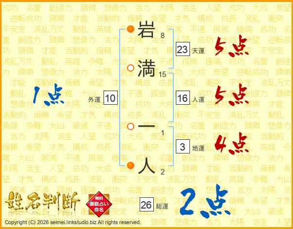 岩満一人さんの総運は26画の2点!