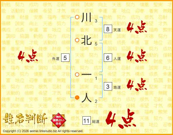 川北一人さんの総運は11画の4点!