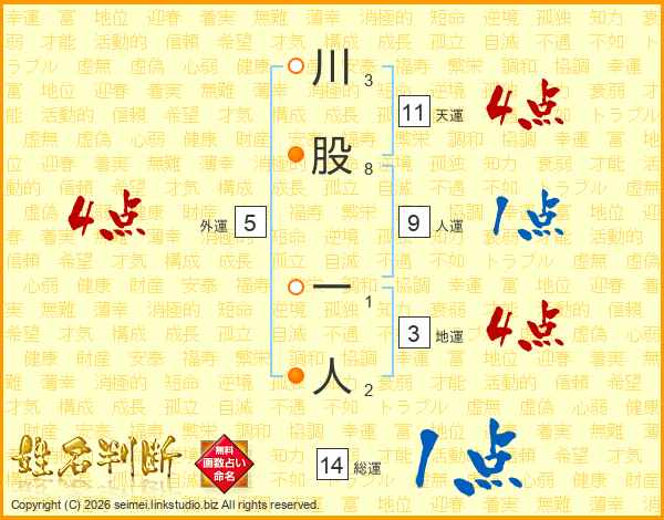 川股一人さんの総運は14画の1点!