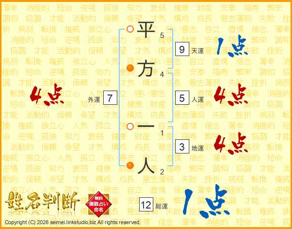 平方一人さんの外運は7画の4点!