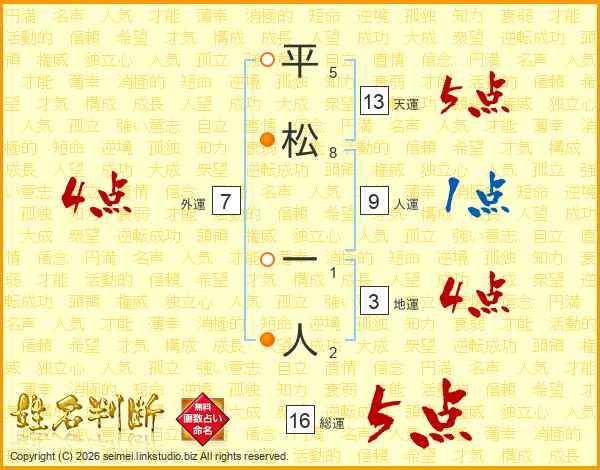 平松一人さんの天運は13画の5点!