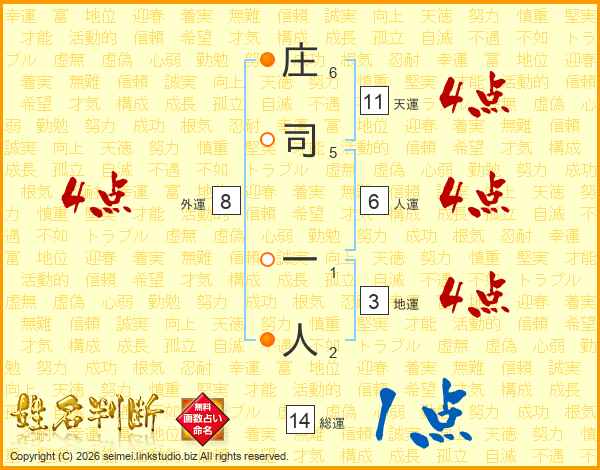 庄司一人さんの総運は14画の1点!