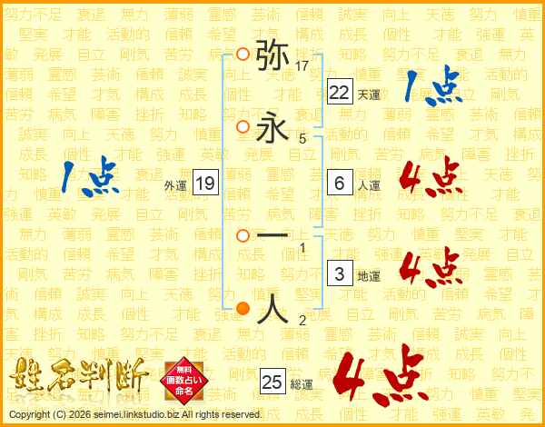 弥永一人さんの総運は25画の4点!