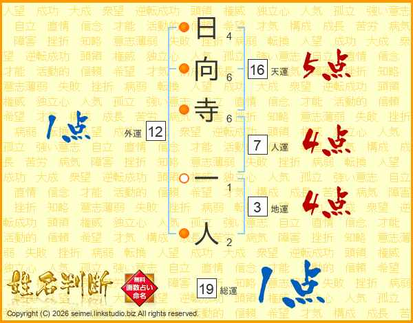 日向寺一人さんの総運は19画の1点!