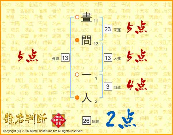 晝間一人さんの総運は26画の2点!