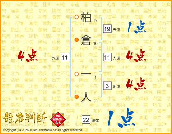 柏倉一人さんの人運は11画の4点!